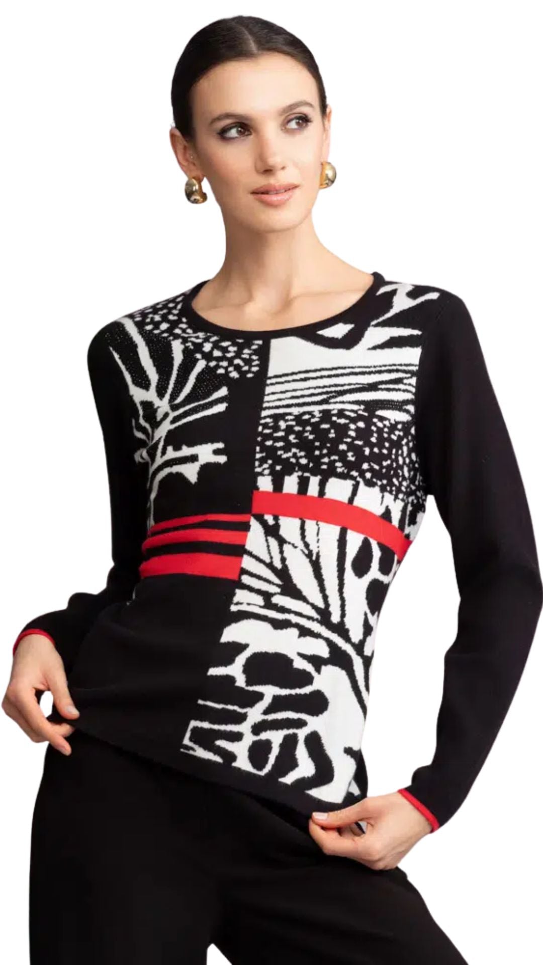 Red Accent Black & White Print Sweater. Style ALSA46470