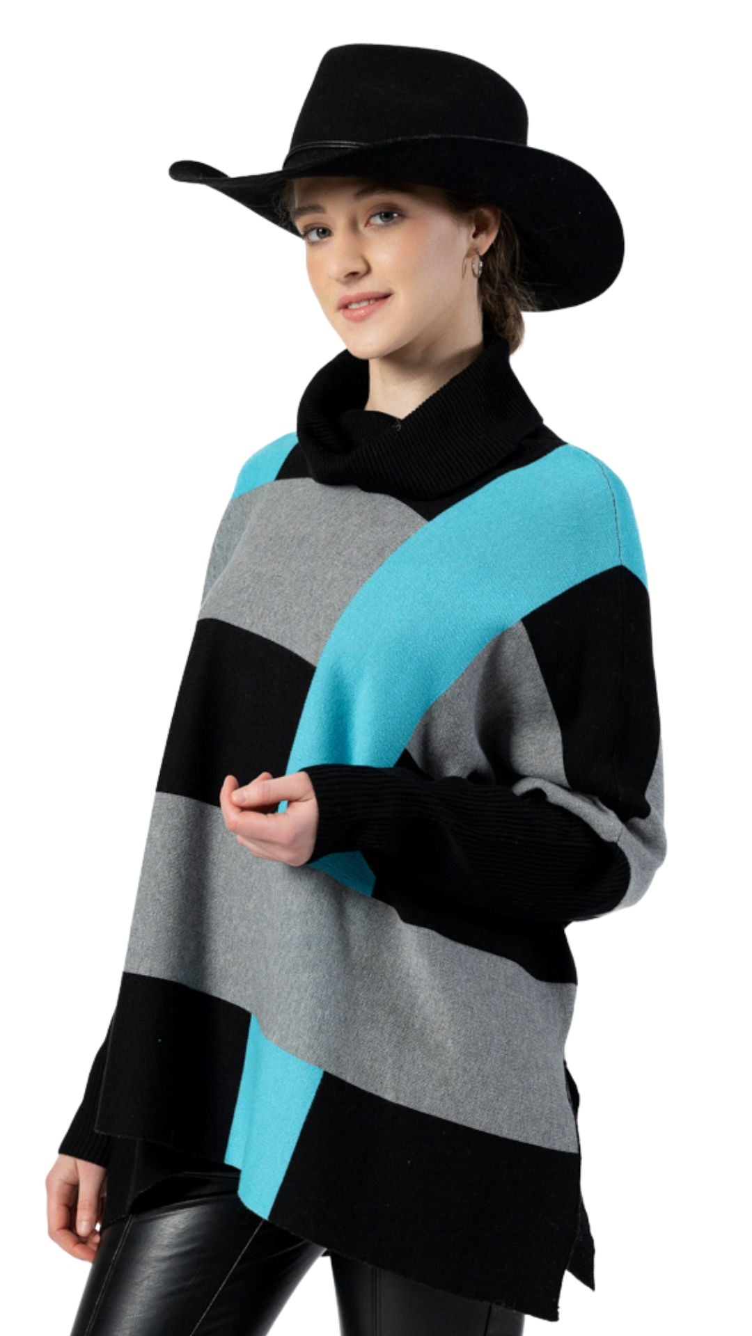 Cowl Neck Drop Shoulder Teal Accent Sweater. Style FS253A13