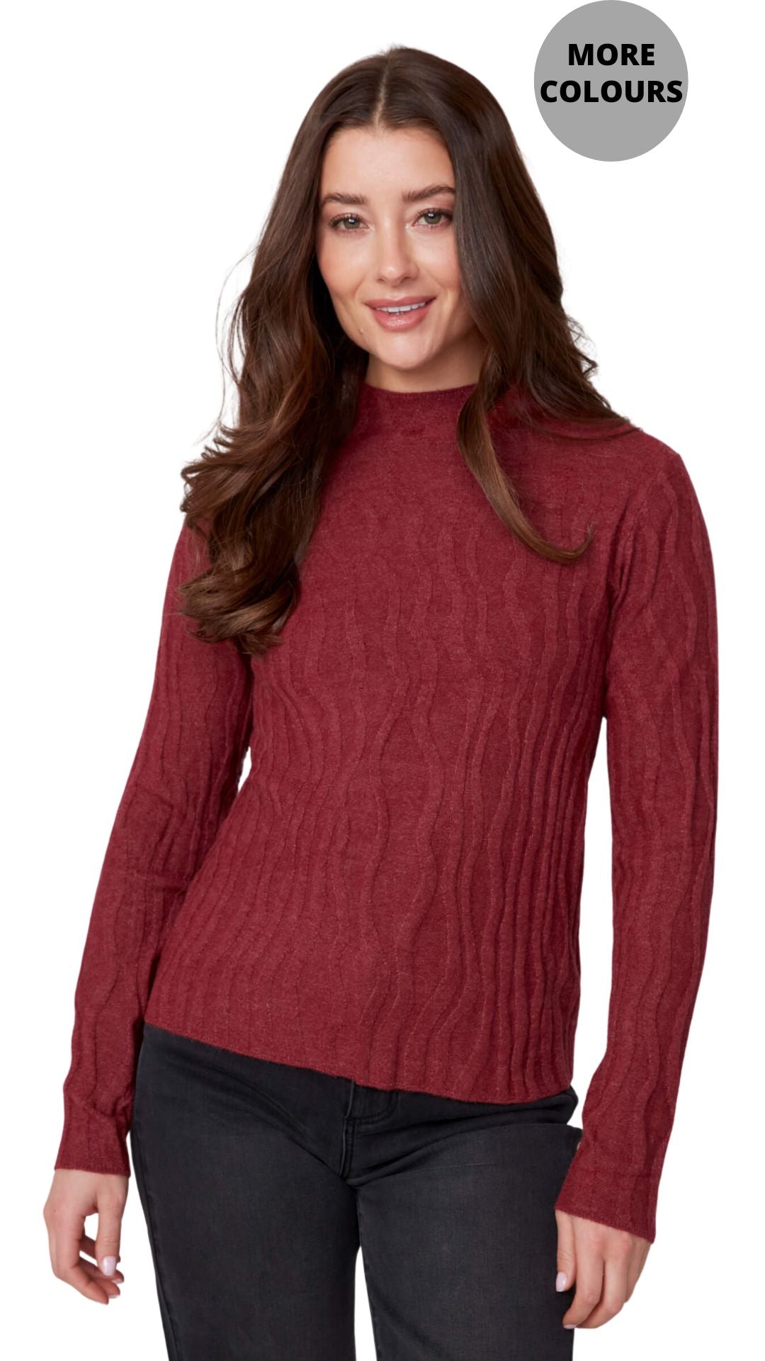 Mock Neck Wavy Texture Top. Style REN6909-4301