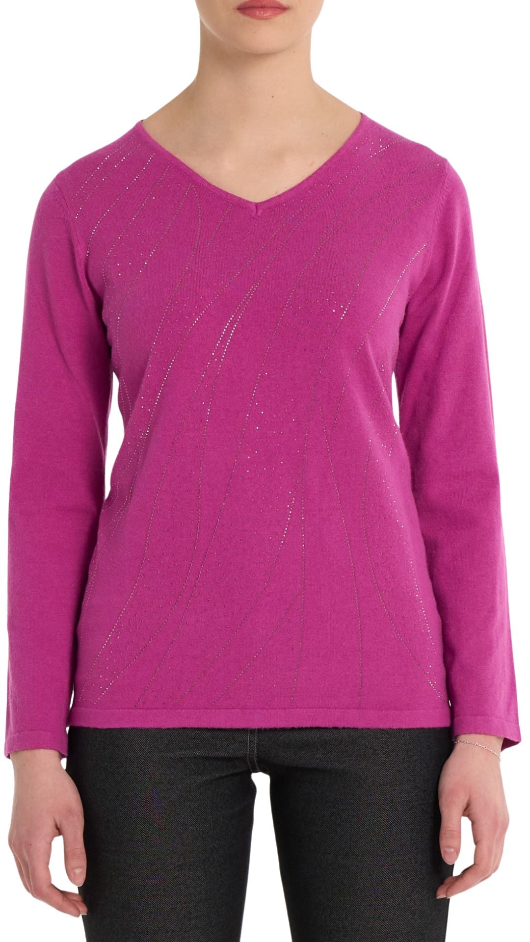 Rhinestone Pattern Magenta Long Sleeve Top. Style MIGN4067