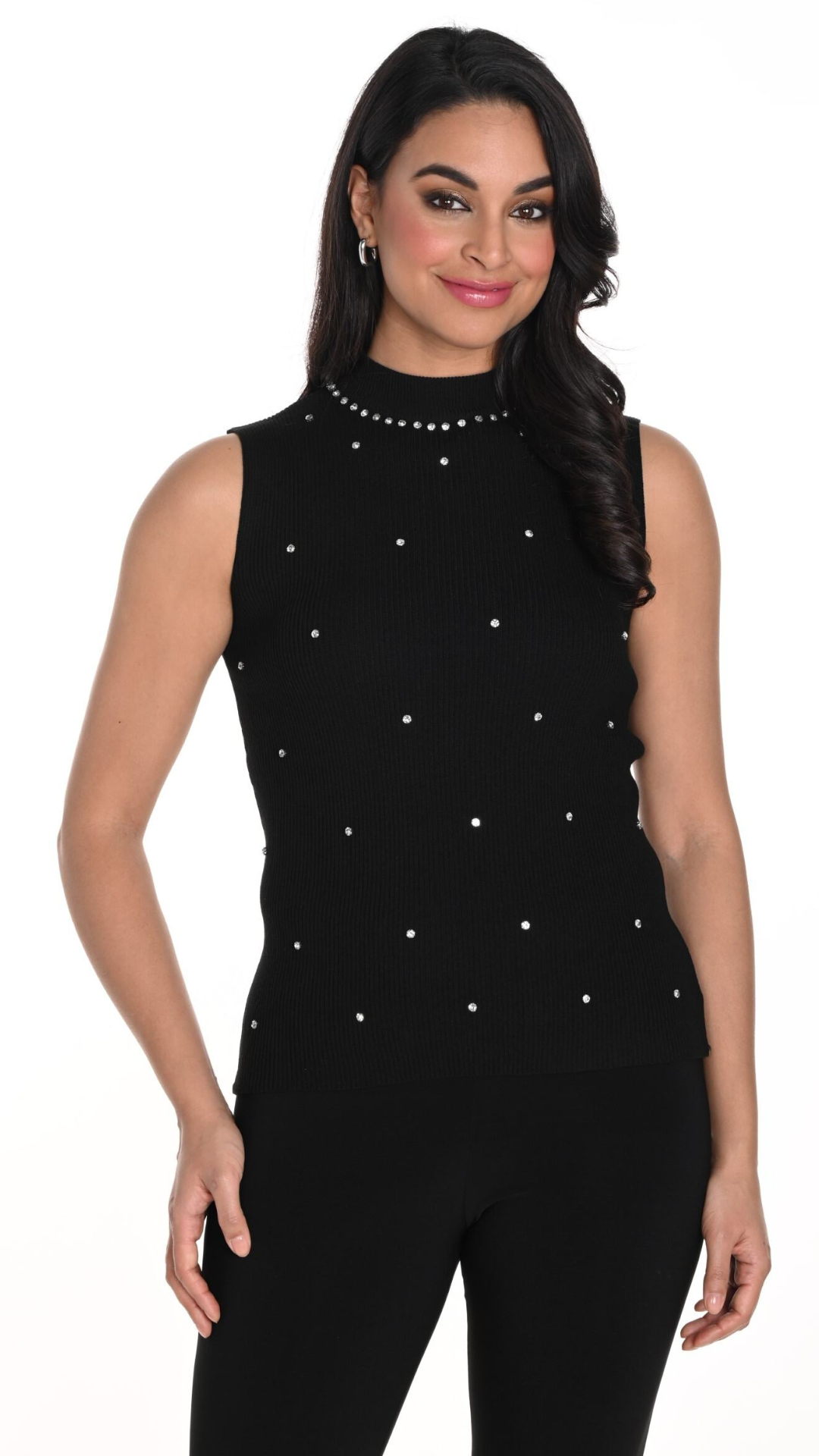 Sleeveless Mock Neck Gem Knit Top. Style FL243461U