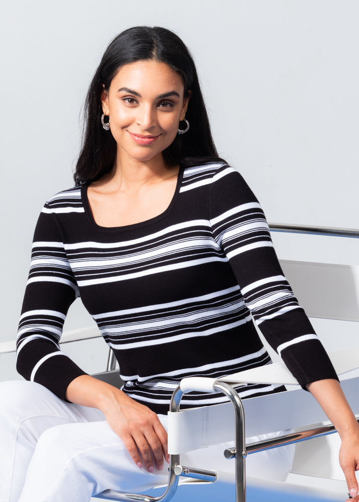 Square Neck Striped Sweater. Style EW34150