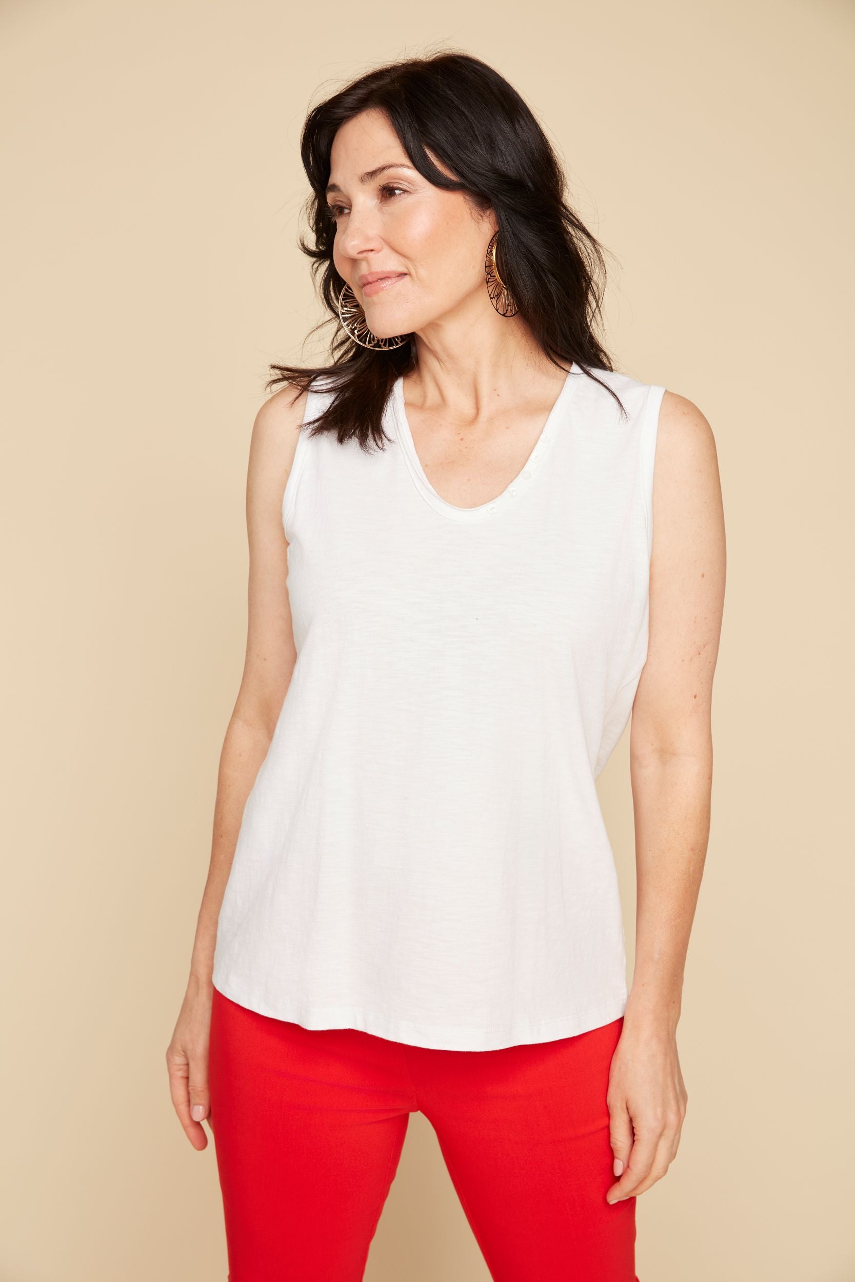 Cotton Comfort V-Neck Sleeveless Top. Style REN7780-89G