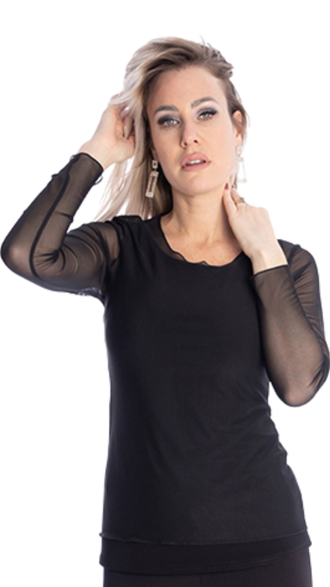 Sheer Mesh Round Neck Long Sleeve Top. Style MT25F2007