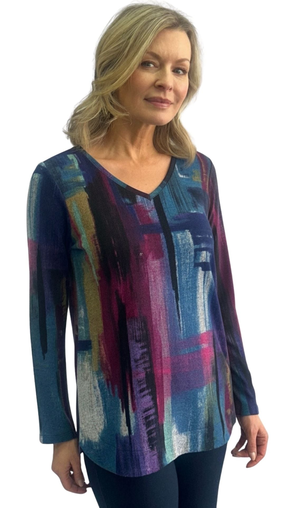 Petite V-Neck Long Sleeve Patterned Top. Style SW102326PA