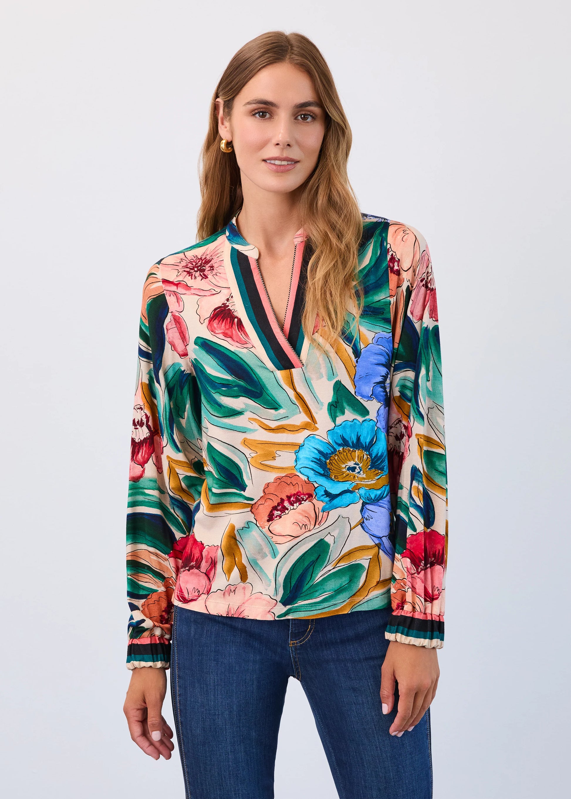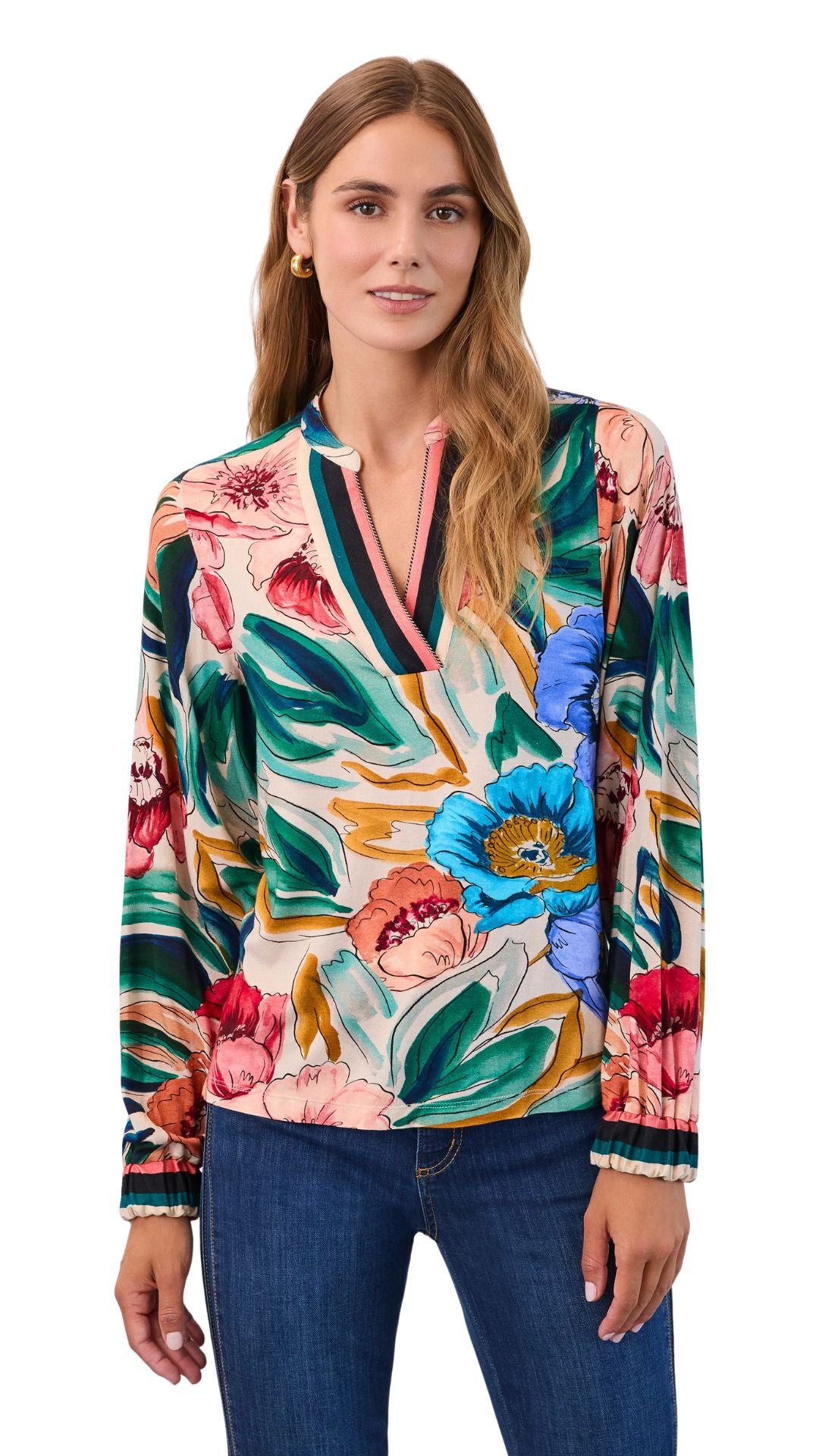 Long Sleeve Floral Print Elastic Cuff Top. Style FD3800153