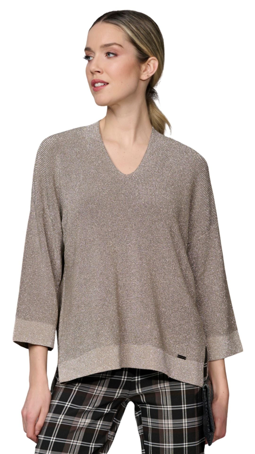 Metallic V-Neck Loose 3/4 Sleeve Top. Style PYFE160