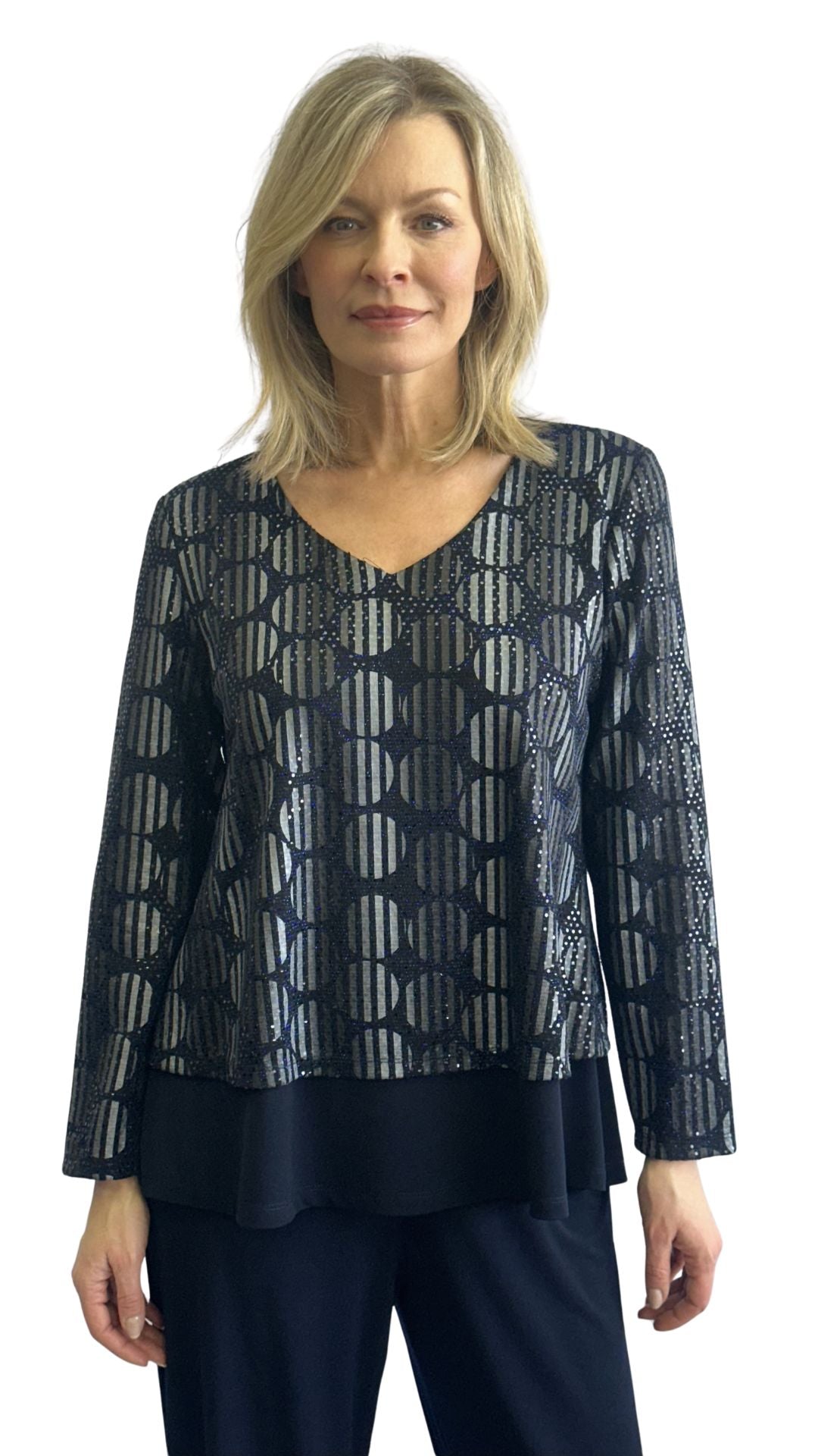 Holiday Midnight Layered Sequin & Sparkles Top. Style SW102021