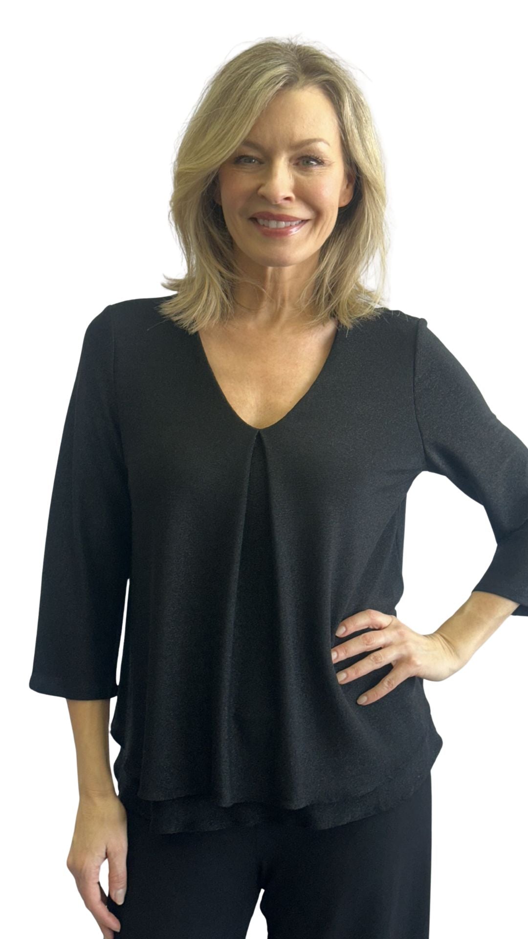 Pleated Front V-Neck Sparkly Top. Style SW102029