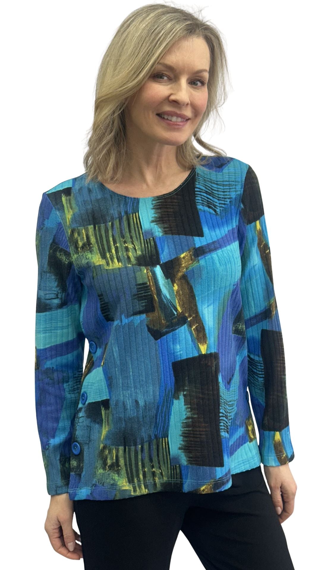 Blue & Yellow Print Round Neckline Top. Style SW102311