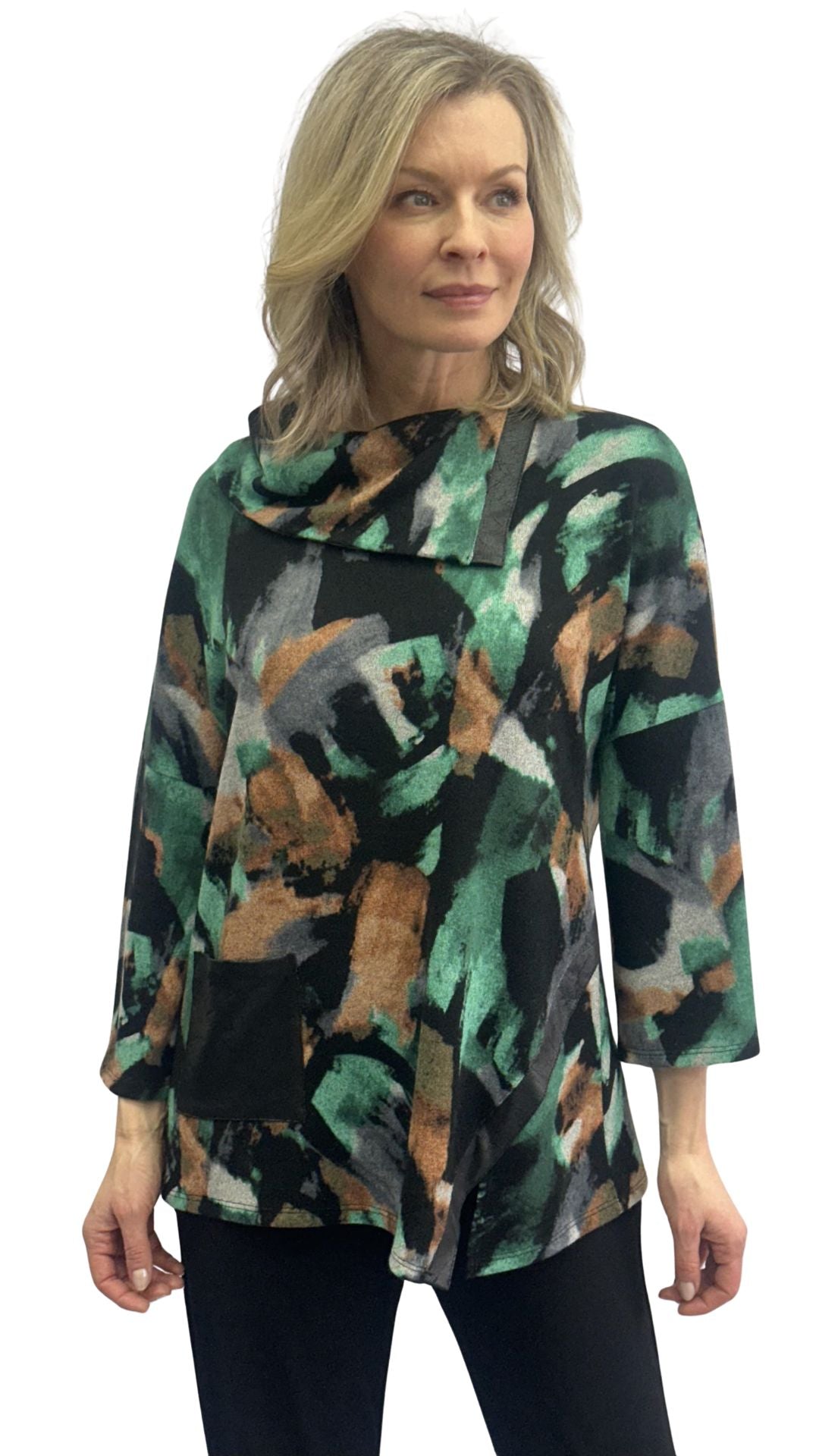 Split Collar Loose Sleeve Patterned Top. Style SW102335