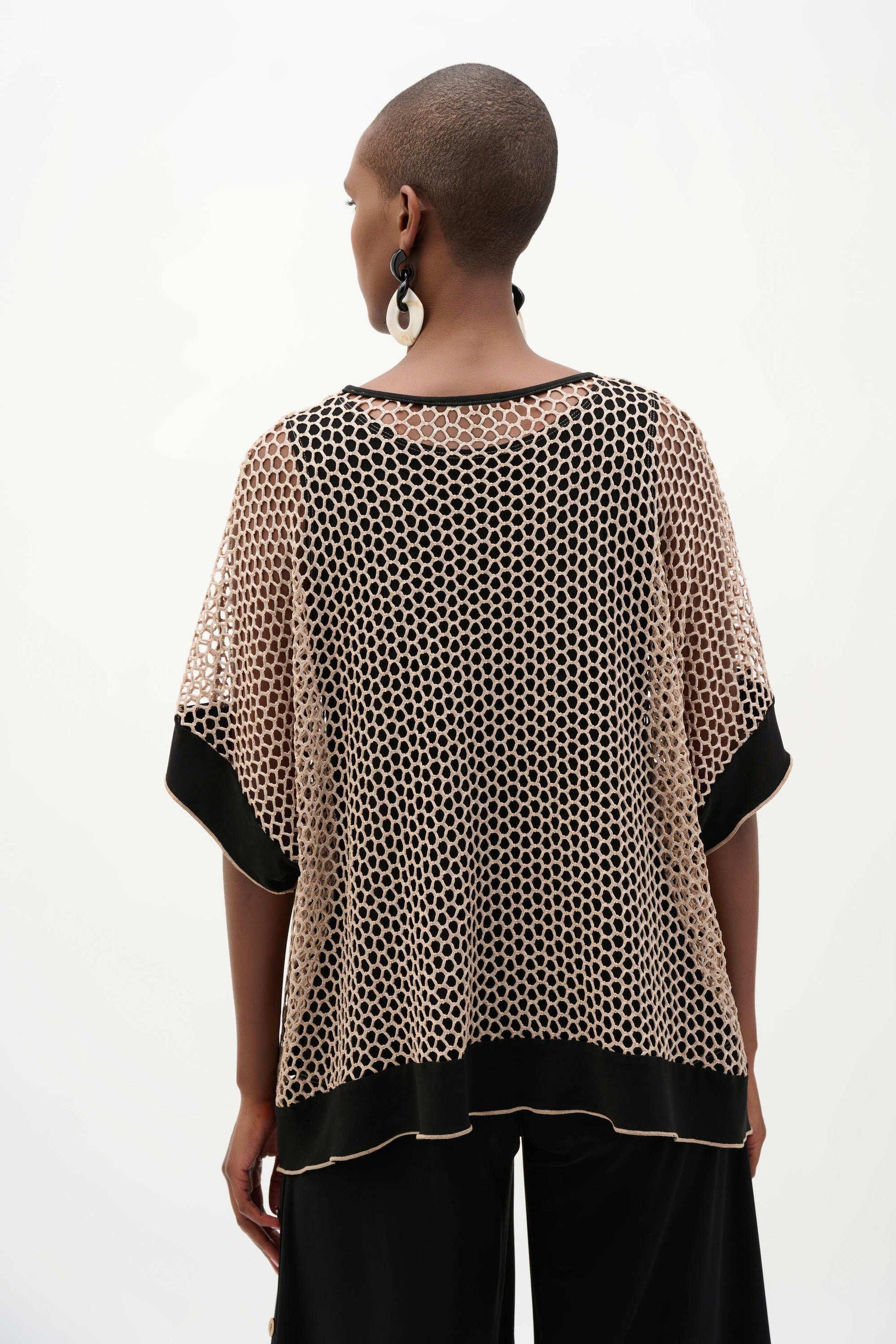 Silky Knit And Mesh Contrast Cuffs Trapeze Top. Style JR262160