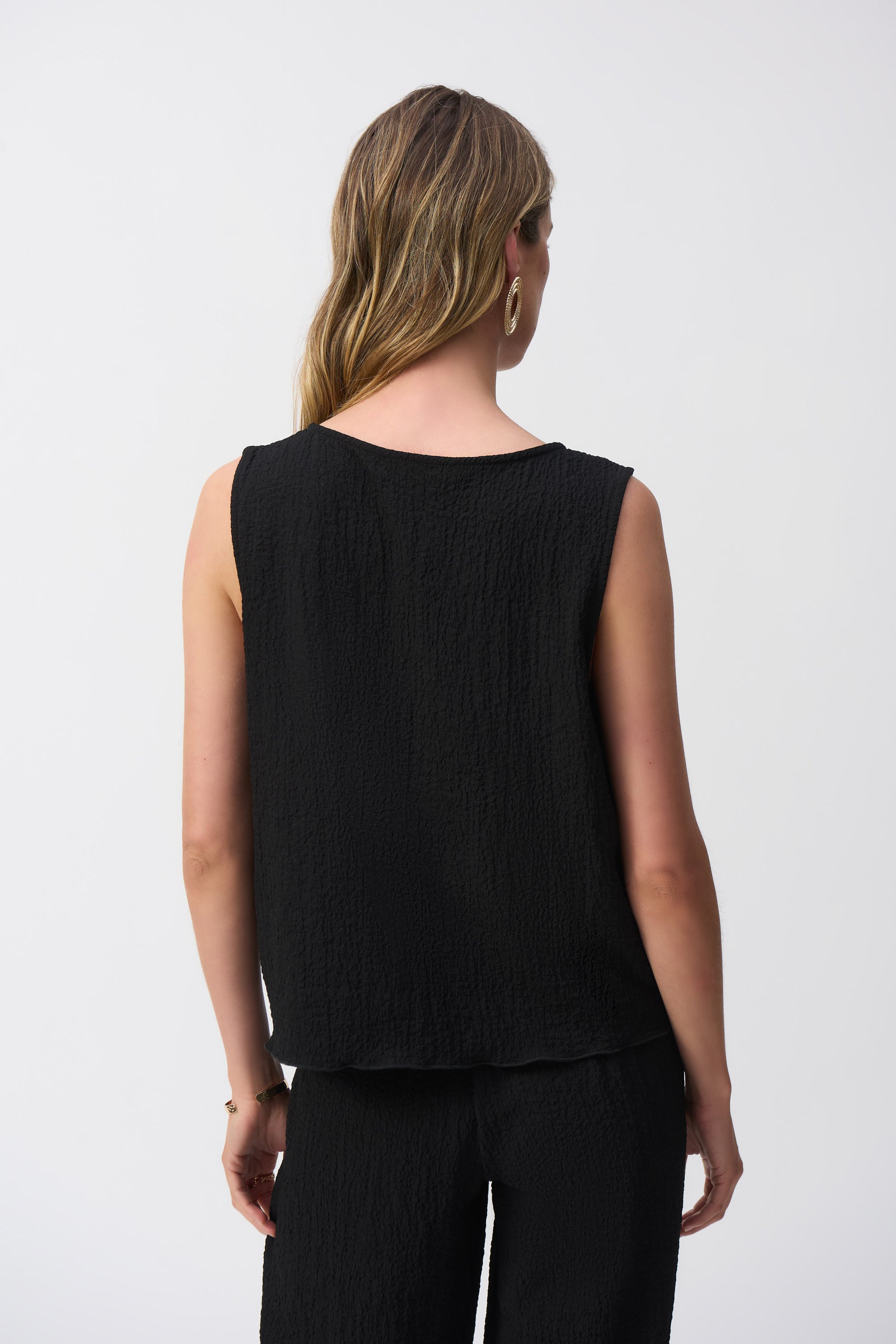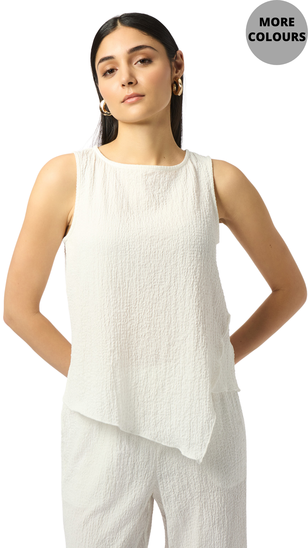 Seersucker Asymmetrical Sleeveless Top. Style JR251228