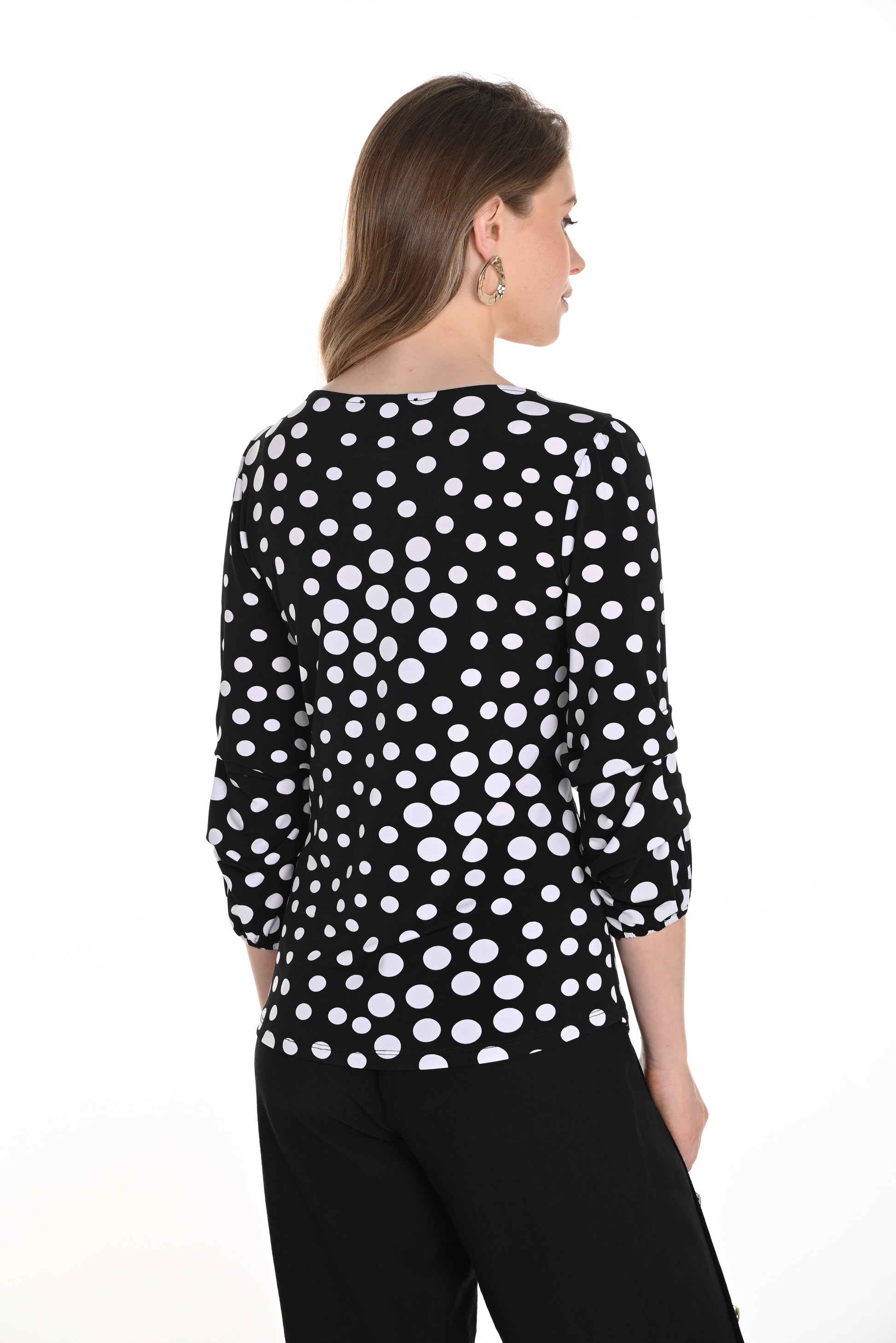 Puffed & Ruffled Sleeve Polka Dot Top. Style FL256309