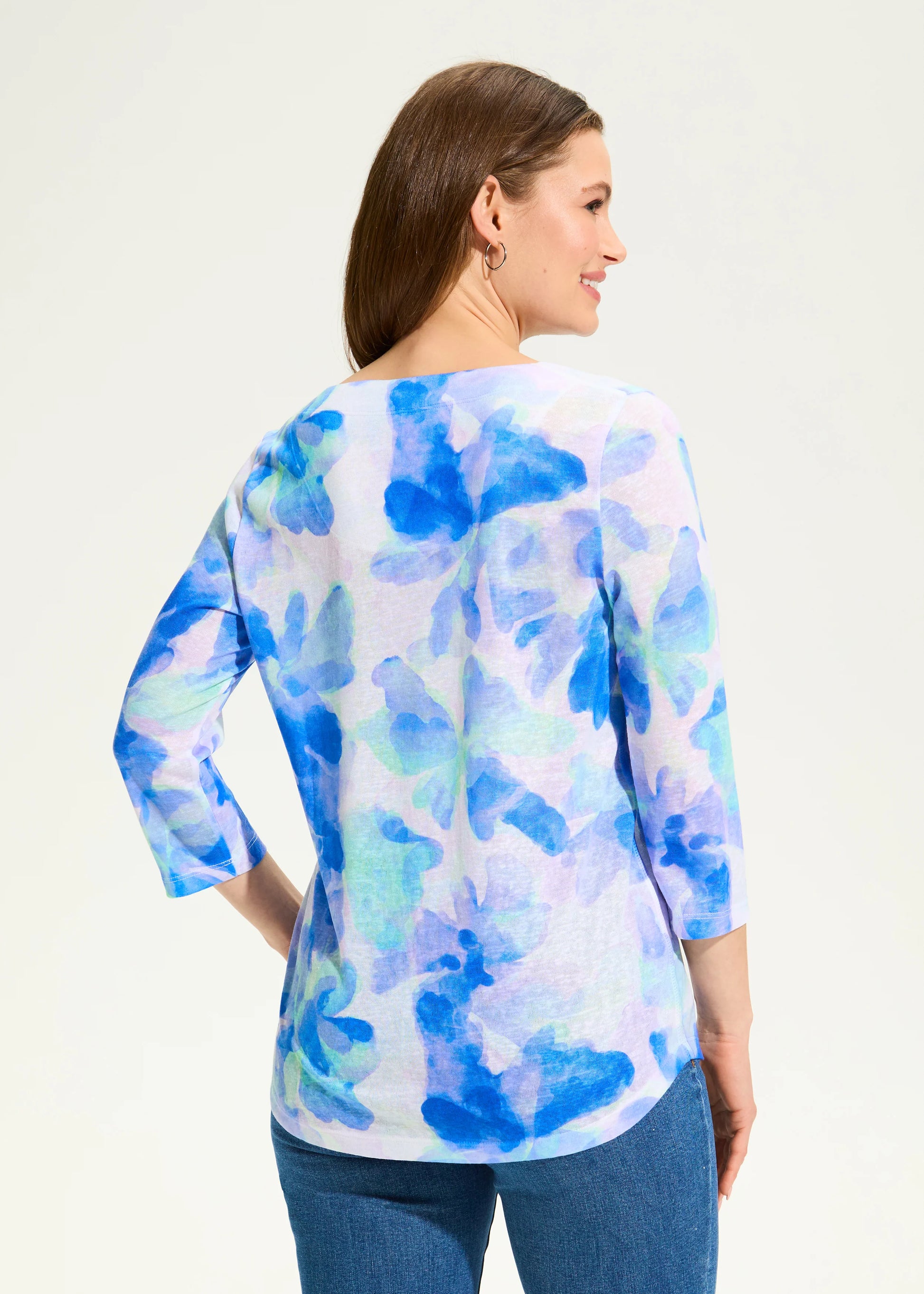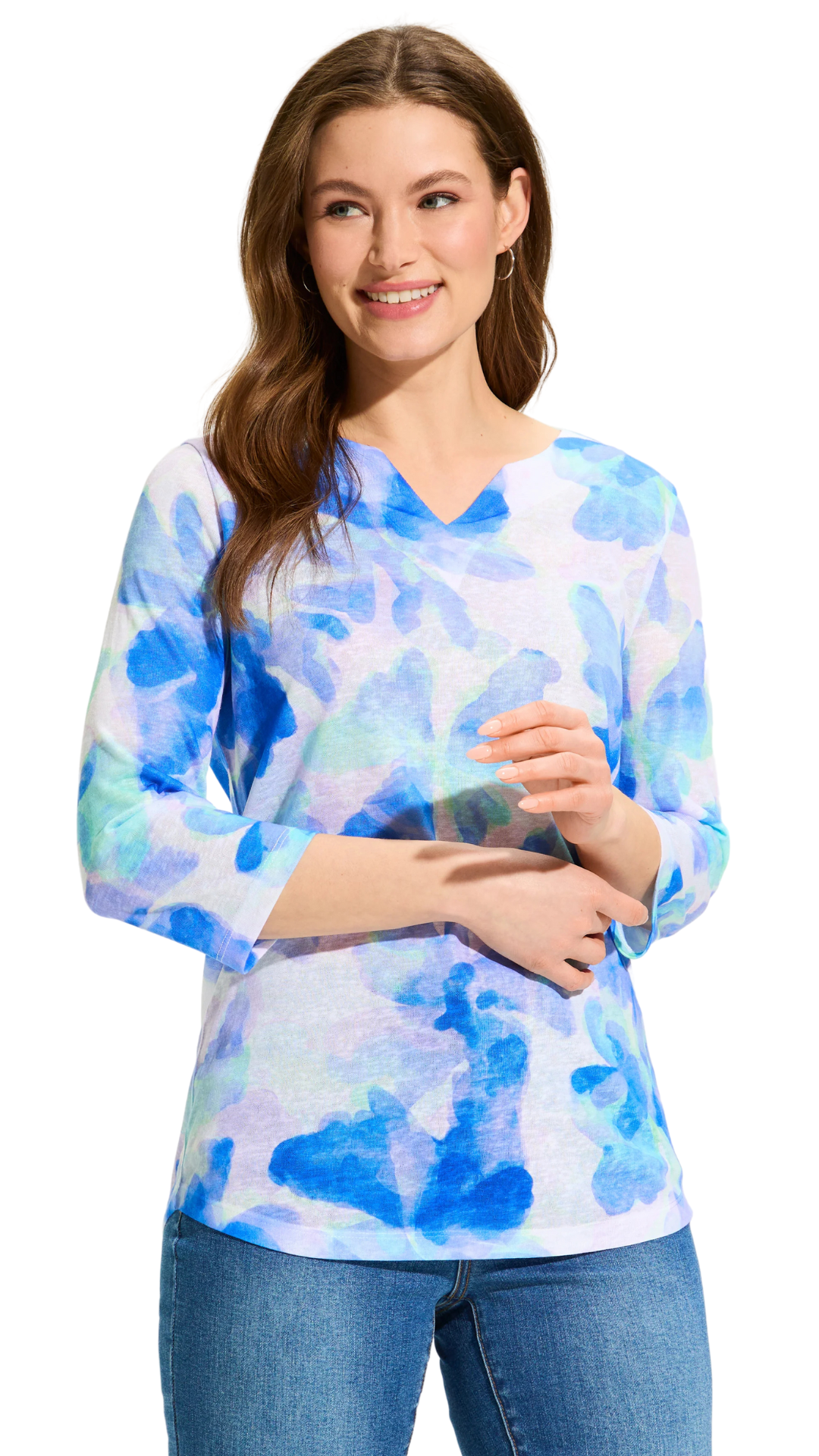 3/4 Sleeve Notch Neck Top, Watercress Blue. Style FD3847451