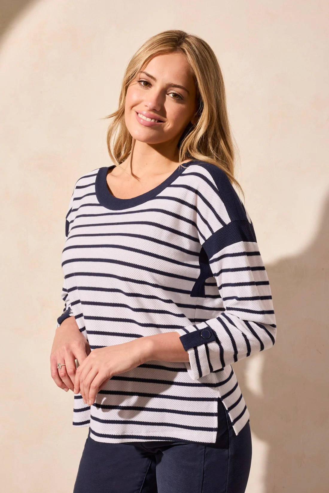 Waffle Knit Tab Cuff Top. Style TR2033O-8109