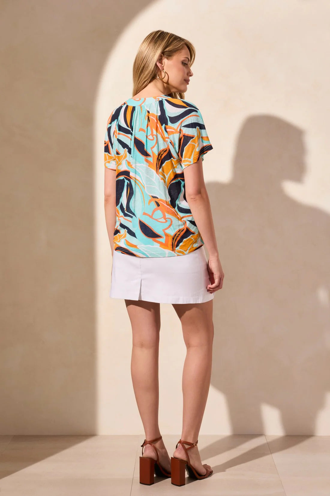Linen Knit Flutter Sleeve Henley Top. Style TR2027O-1557