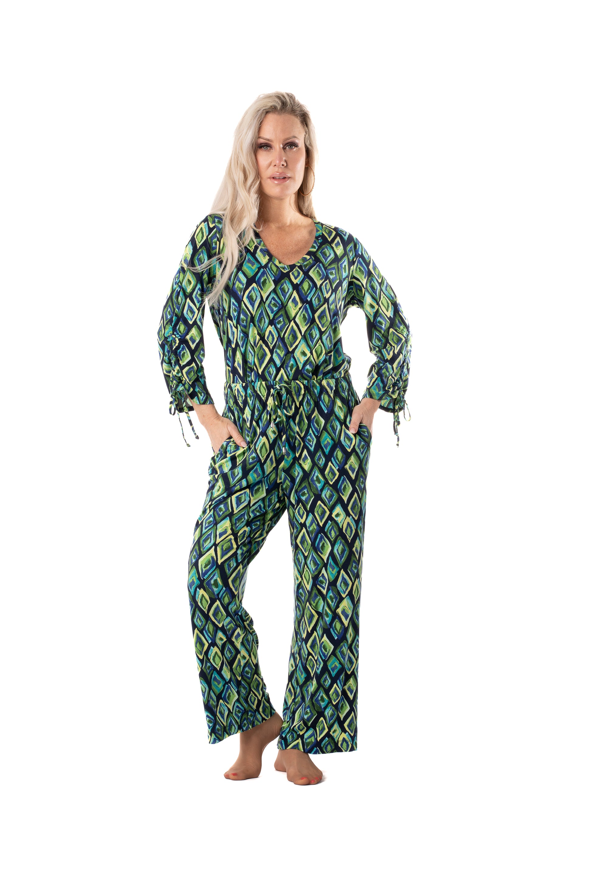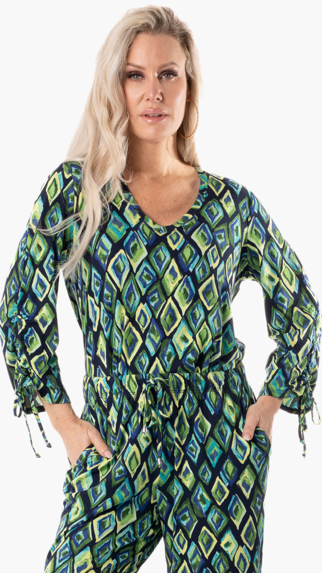 Gather Cuff Printed V-Neck Top. Style PE597-4578