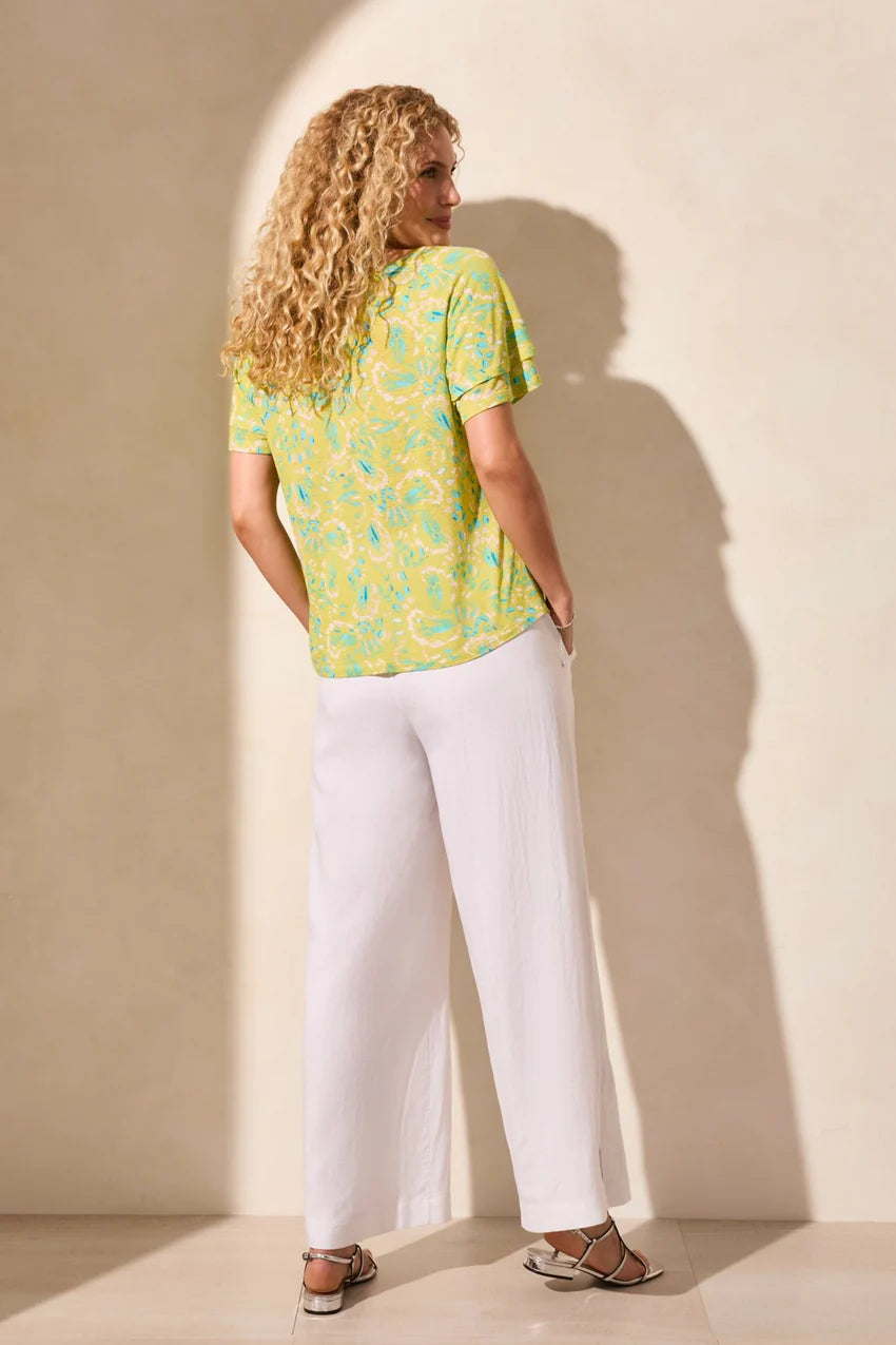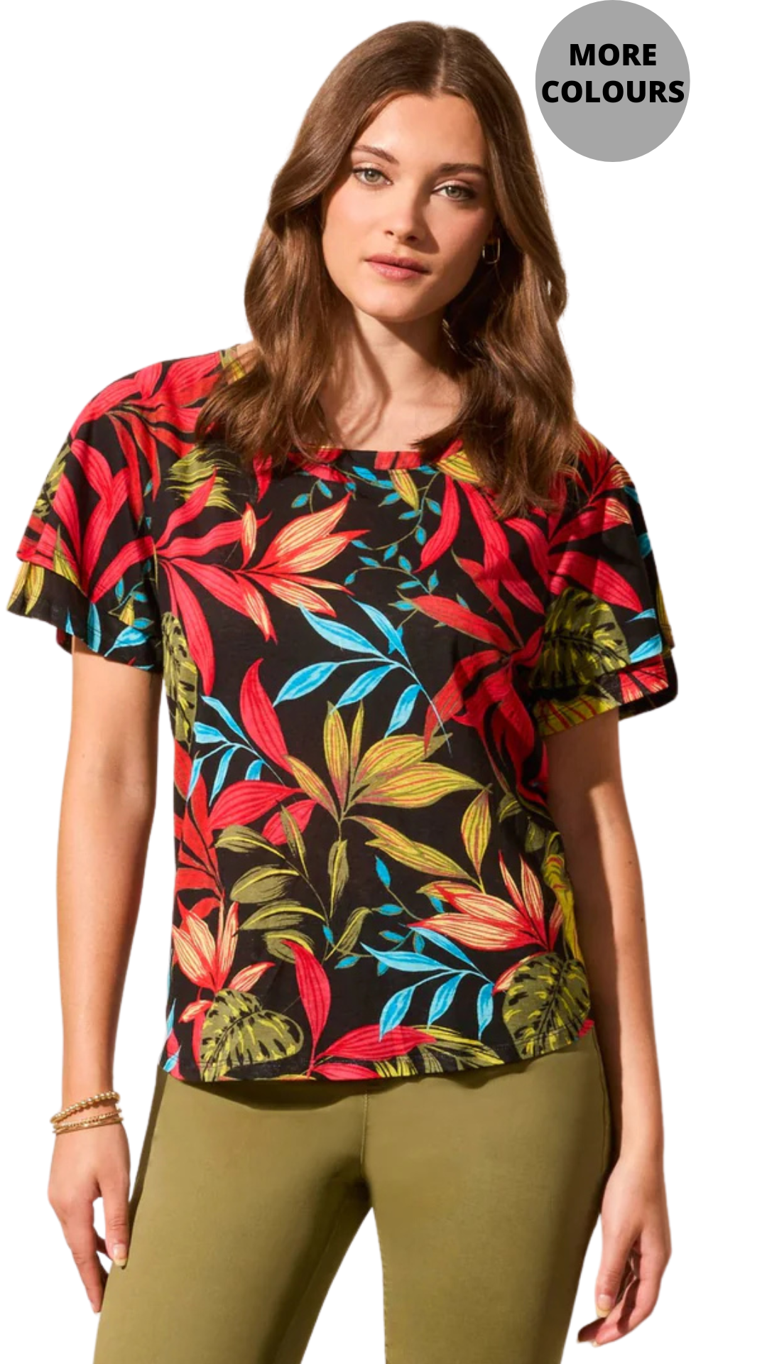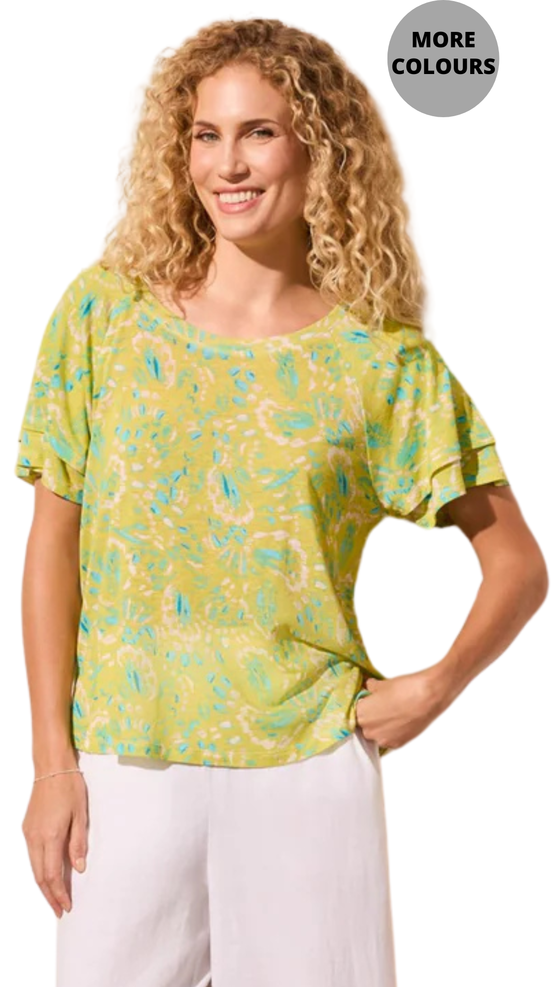 Linen Blend Ruffled Sleeve Top. Style TR2029O-1557