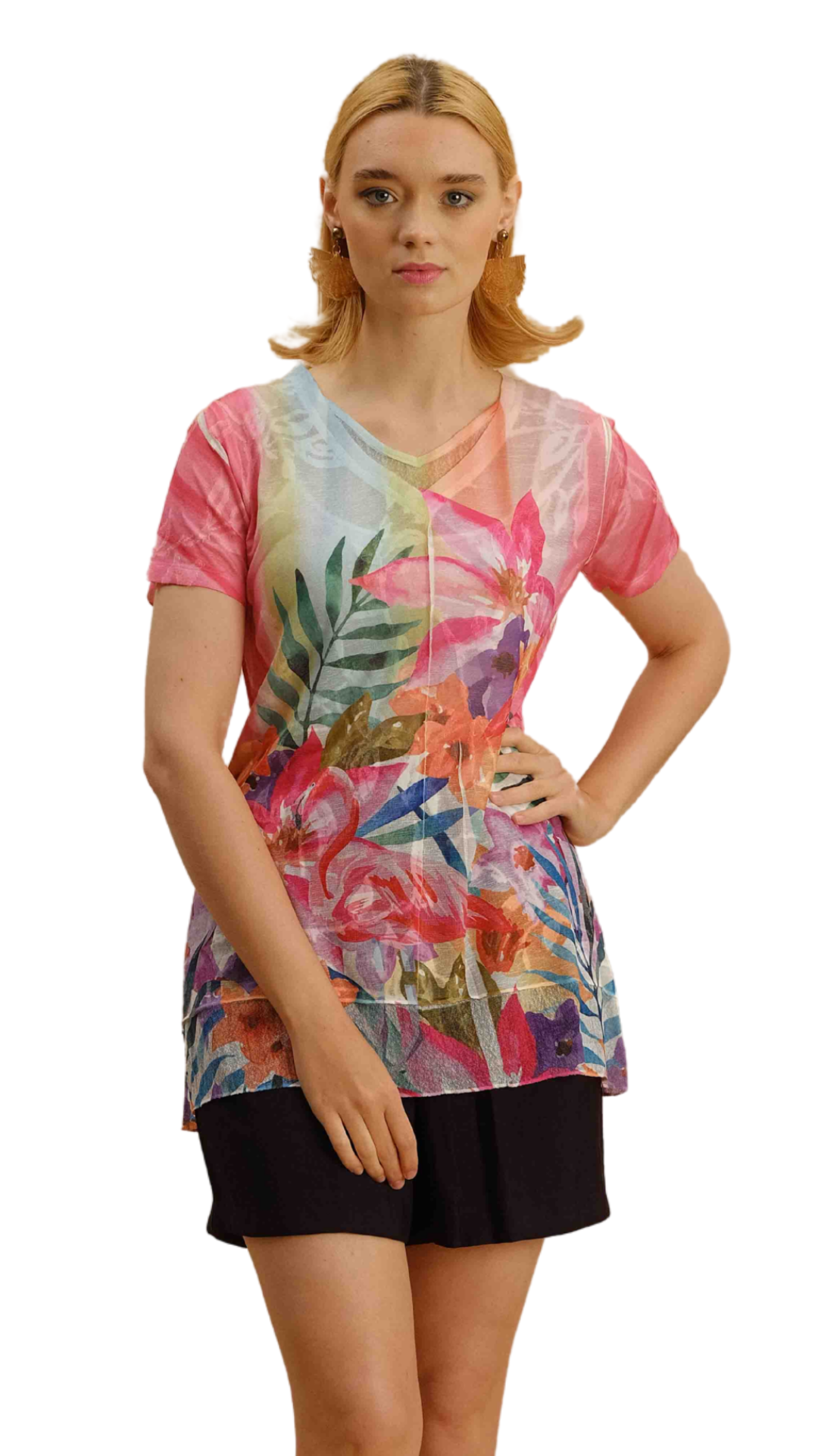 Mesh Floral Short Sleeve Top. Style CAT125154