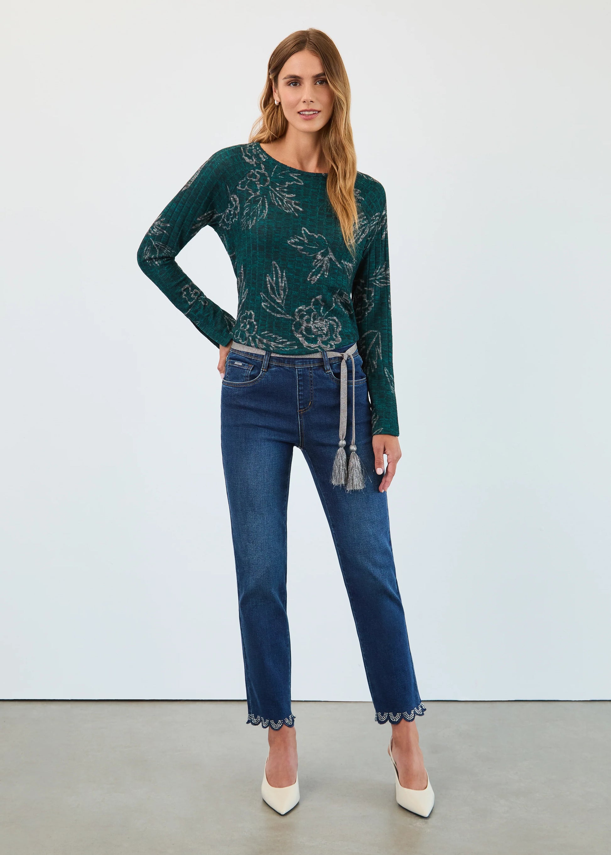 Long Sleeve Floral Print Ribbed Top. Style FD3421508