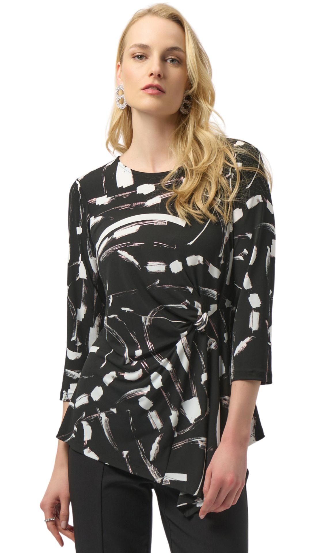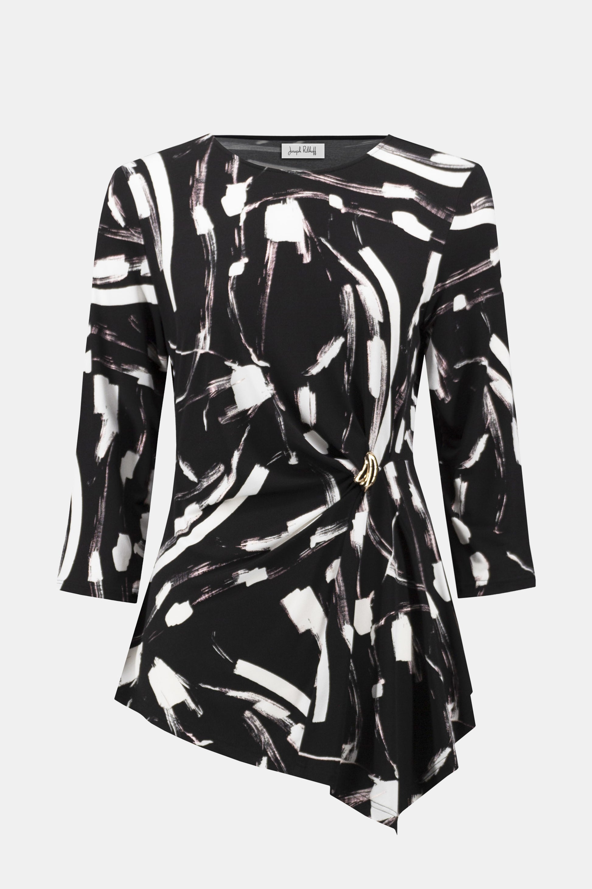 Silky Knit Abstract Print Asymmetrical Top. Style JR254165