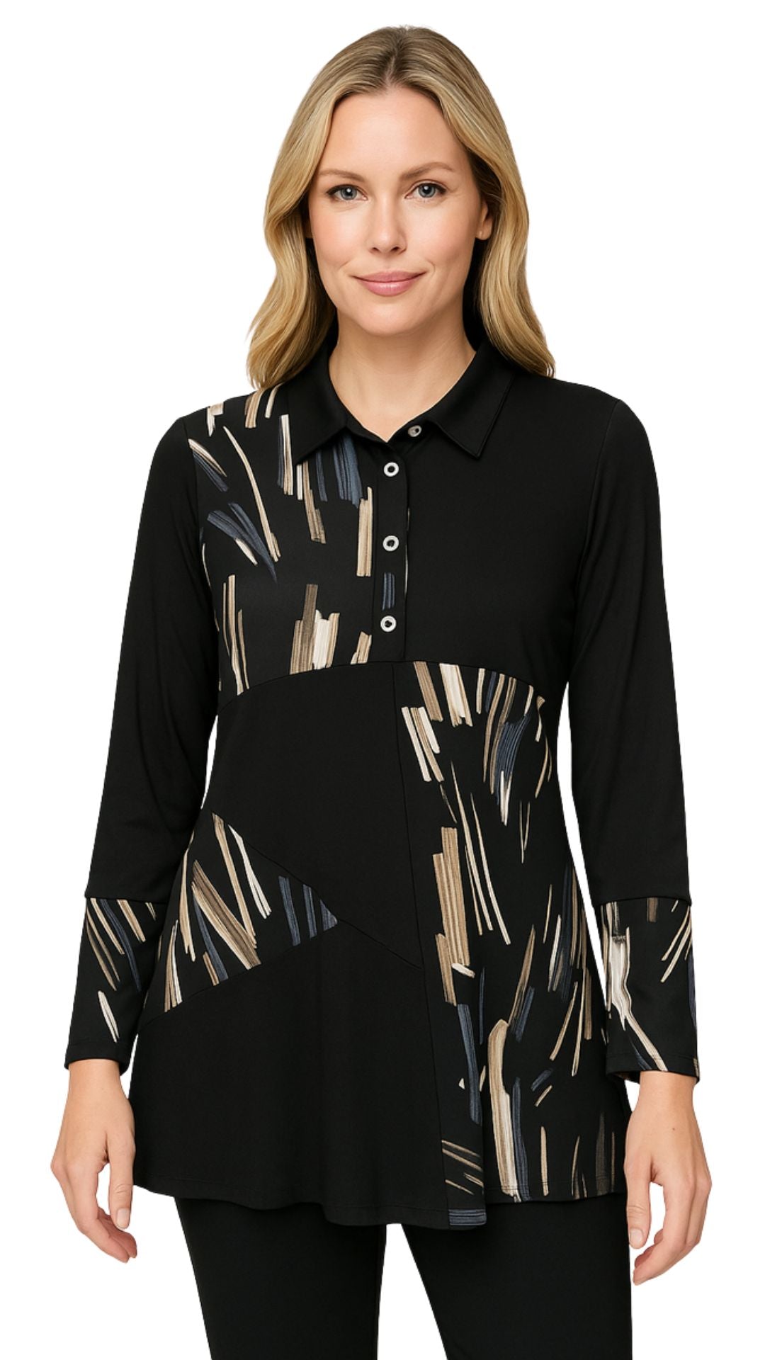 Pattern Block Half Button Up Tunic. Style MT25F1949