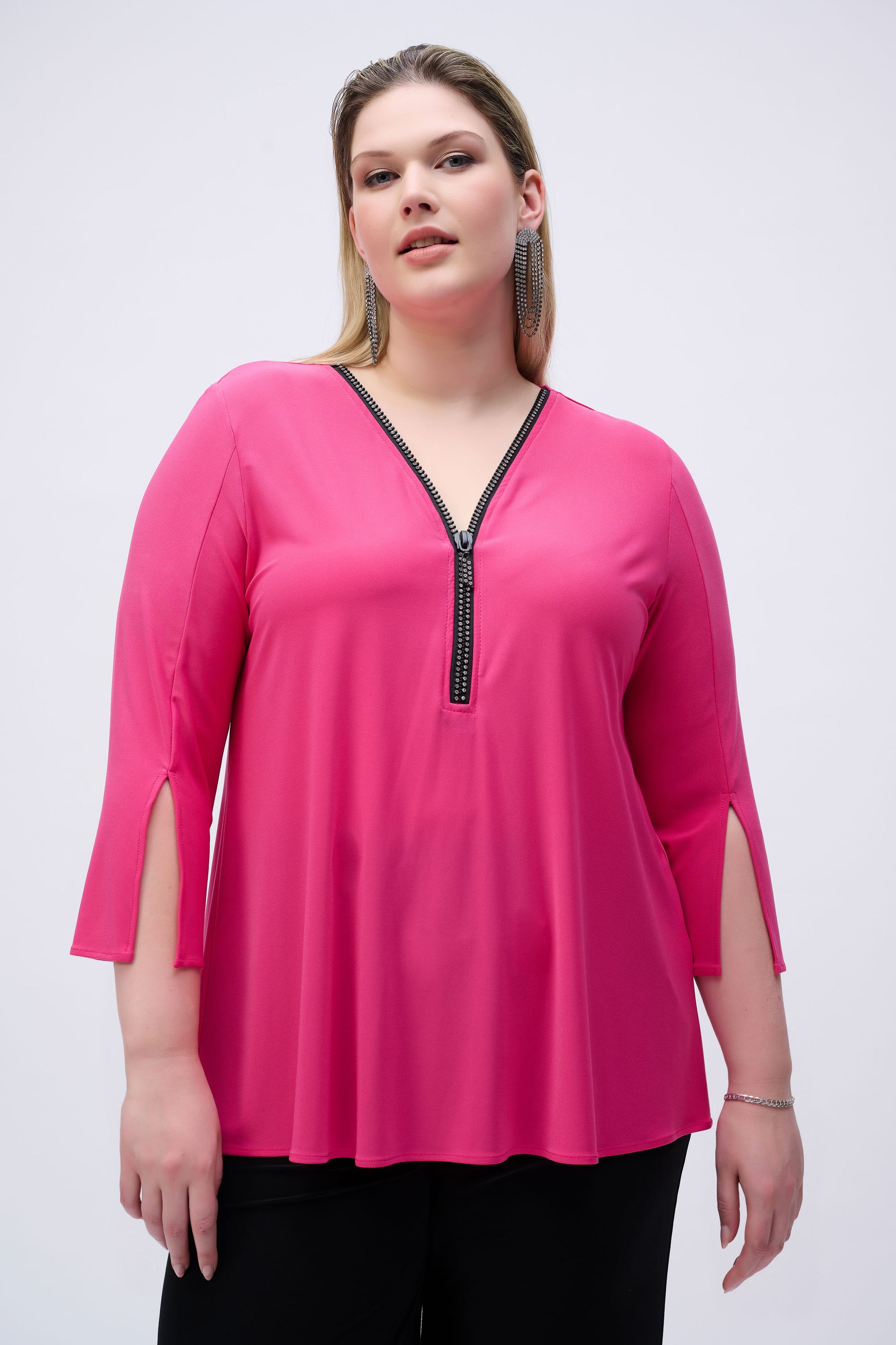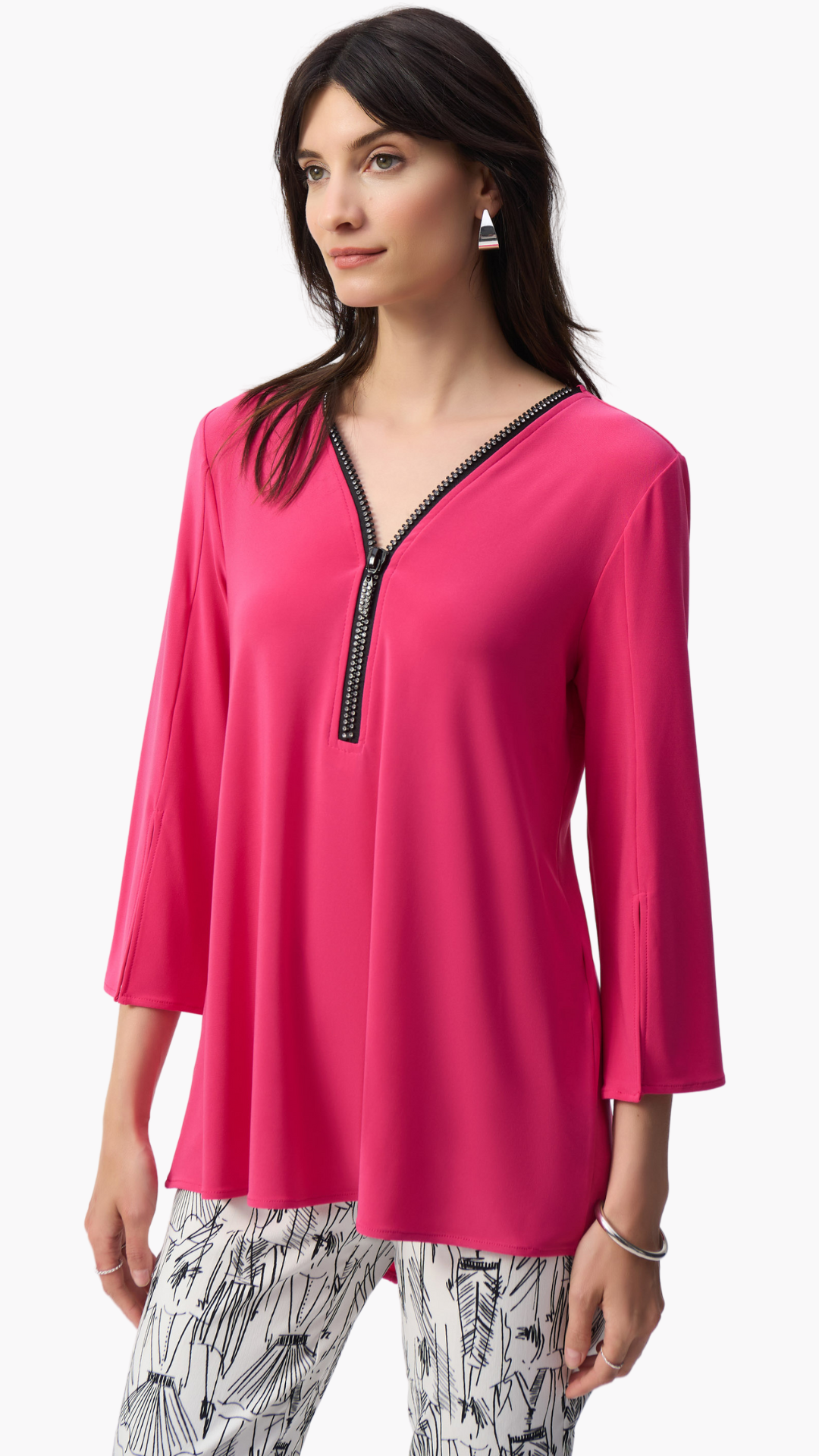 Silky Knit Fit & Flare Rhinestone Zip Tunic. Style JR243314S25