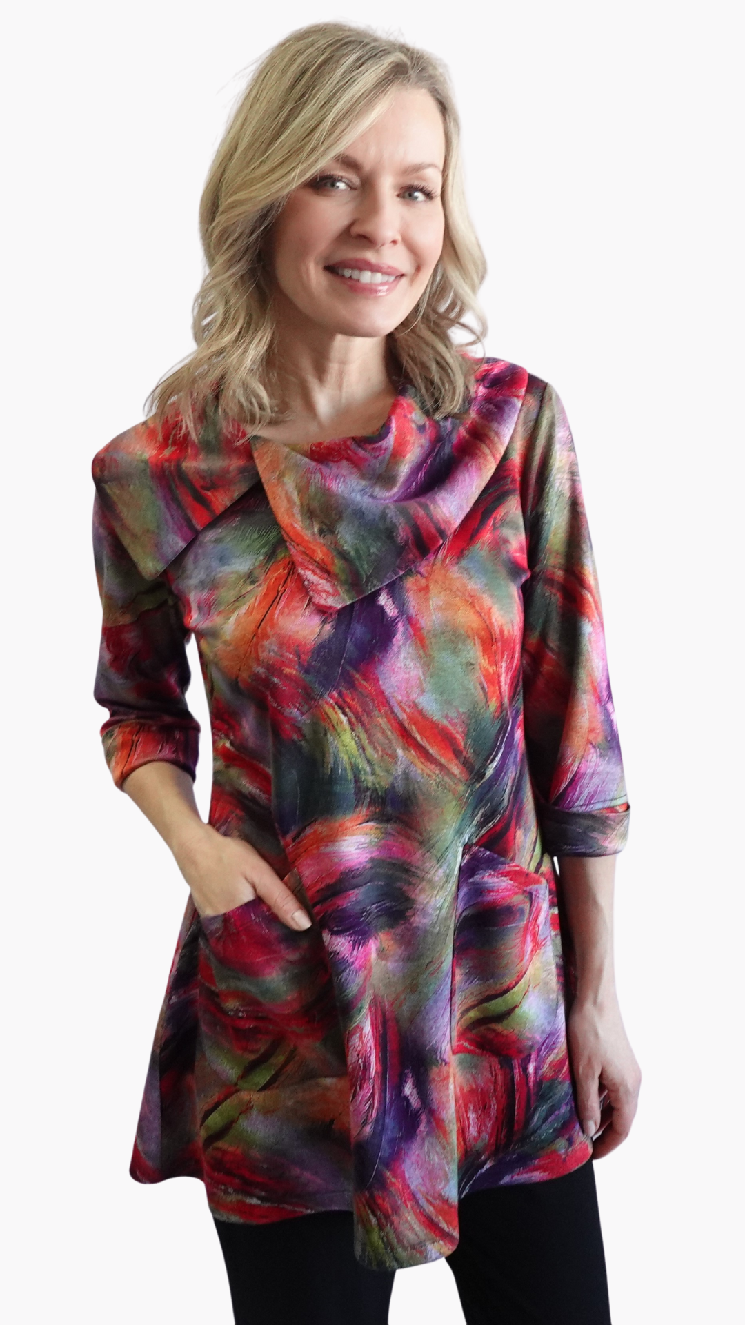Phoenix Print Slit Cowl Flared Tunic. Style SW102926