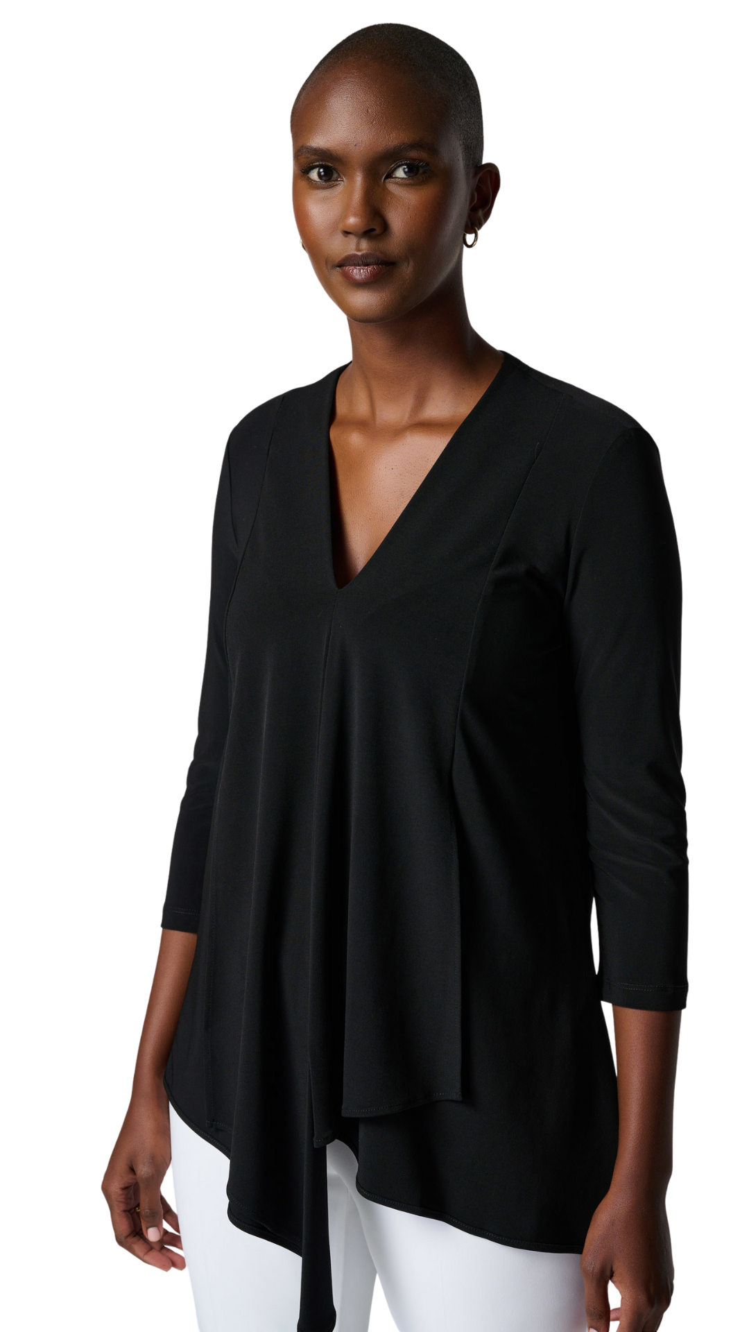 V-Neck Black Asymmetric Tunic. Style JR161066-BLK