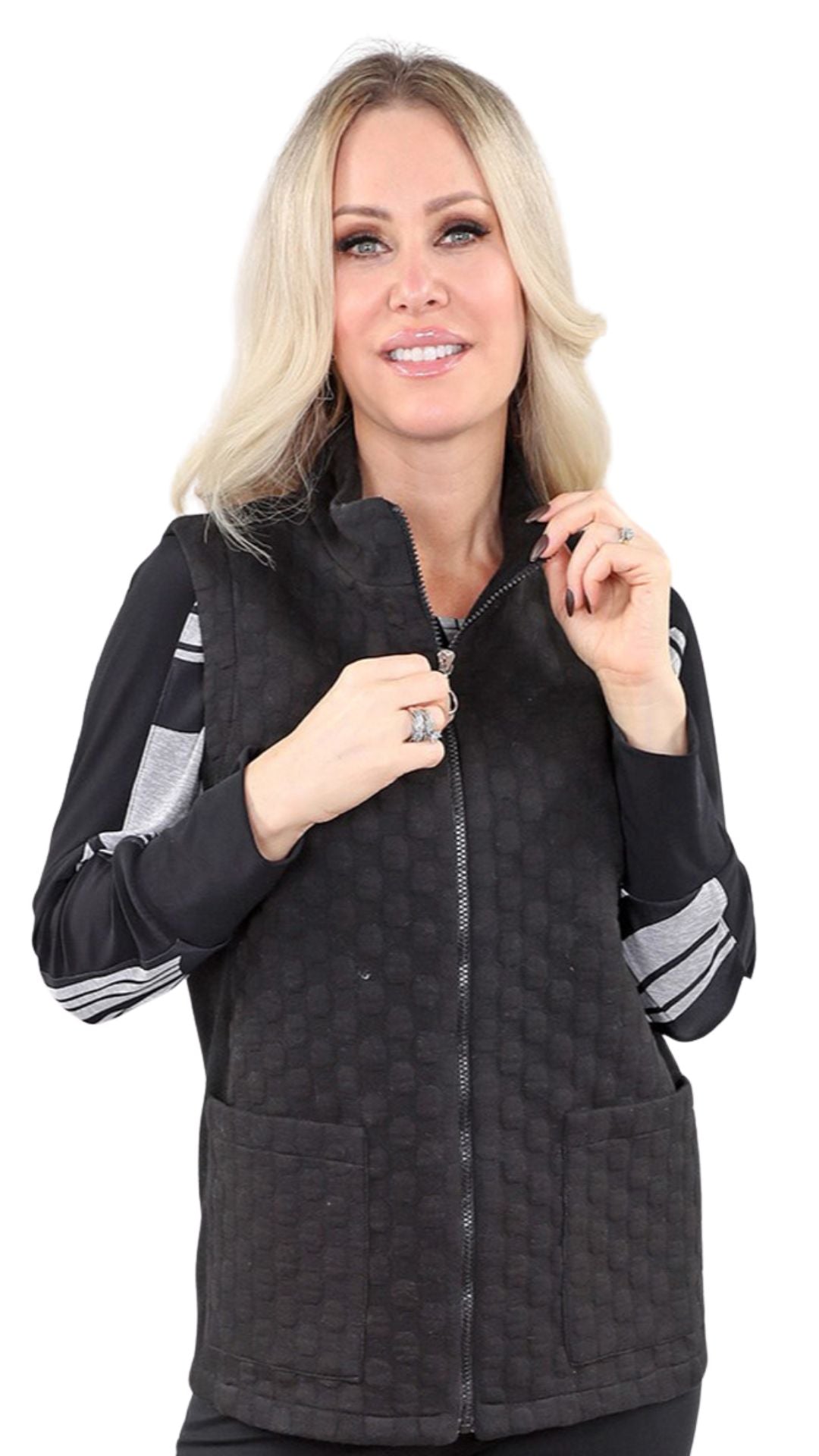 Zip Front Bubble Texture Fabric Vest. Style MT25F5960